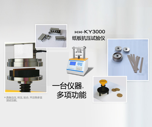 HH-KY3000型 紙板抗壓試驗儀(也稱環壓儀、邊壓儀)主要用于:紙張環壓強度測試(RCT)、瓦楞紙板邊壓強度測試(ECT)、瓦楞紙板粘合強度測試(PAT)、瓦楞紙板平壓強度測試(FCT)、原紙實驗室起楞后壓縮強度(CCT)和平壓強度(CMT)、蜂窩紙板平壓測試、瓶蓋抗折彎等測試。